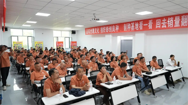 室內會議,豫玉種業總經理彭強首先致歡迎詞。他說,感謝多年來各位伙伴對公司的信任與支持。并表示,下一步,公司將繼續在品種創新、渠道建設、市場宣傳、技術服務和扶持政策等方面全面發力,攜手大家,共同做大做強“金子彈1號”、“雷賽526”市場,為實現宏偉目標努力奮進。