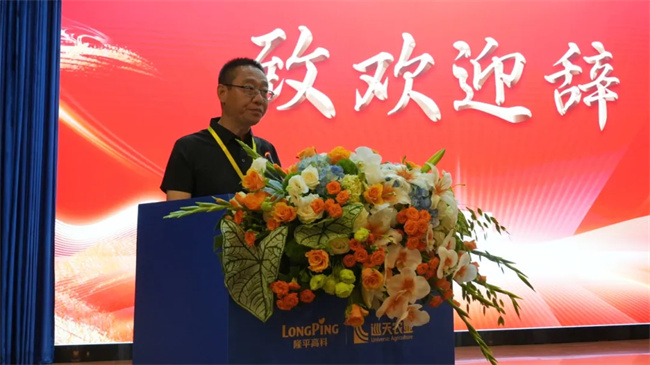 圖為張家口市農業科學院副院長王曉明致歡迎辭