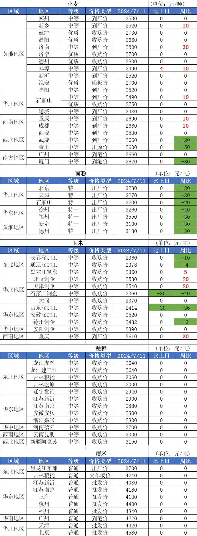 1、7月11日小麥市場整體偏穩運行,局部窄幅漲跌調整。其中,濰坊香野面粉跌5厘,報價1.27元/斤,菏澤華瑞面業跌7厘,報價1.253元/斤,安徽金沙河跌3厘,報價1.24元/斤;咸陽五得利漲1分,報價1.29元/斤。