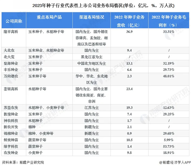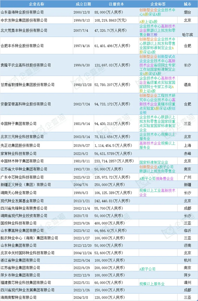 通過前瞻智慧招商系統來看,從生物育種行業的代表性企業布局和已有公開信息分析,注冊資本較高的有隆平高科、墾豐種業、荃銀高科、敦煌種業、豐樂種業等。