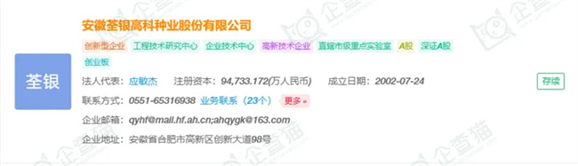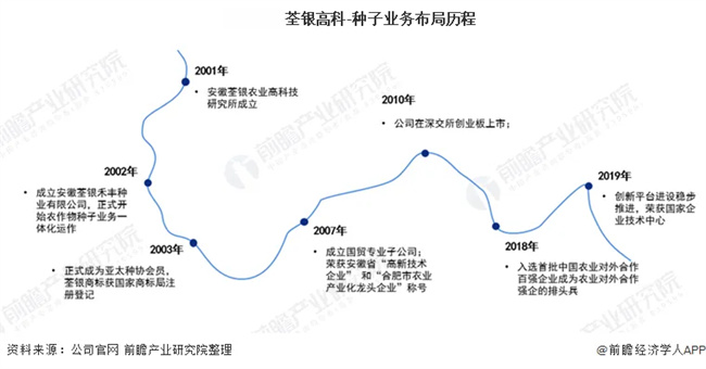 2002年,安徽荃銀禾豐種業有限公司成立,正式開始農作物種子科研、生產經營、國貿等業務一體化運作;2007年,公司成立國貿子公司;2010年,公司在深交所創業板上市,成為“中國創業板種業第一股”。