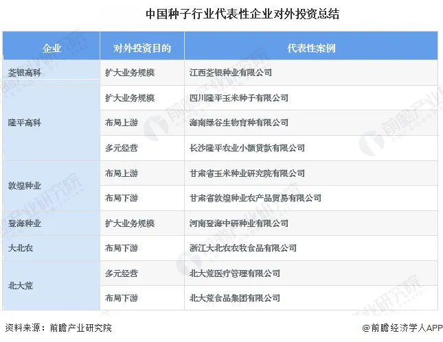從幾家代表性企業的對外投資目的來看,擴大業務規模、布局上下游較多,例如隆平高科在四川建設子公司四川隆平玉米種子有限公司,提升企業在四川的業務規模。