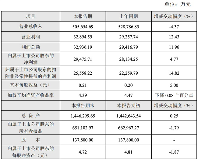 日前,蘇墾農發發布業績快報,公司2024年1-6月實(shi)現營業收入50.57億元(yuan),同比(bi)下(xia)降4.37%;歸屬于上市公(gong)司股東的凈利潤2.95億元(yuan),同比(bi)增長4.77%。