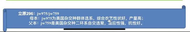 據了解,立原296聚合母父本jw975/jw759雜種優勢,