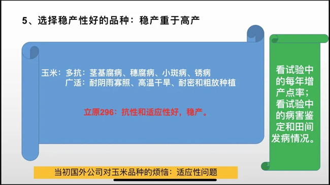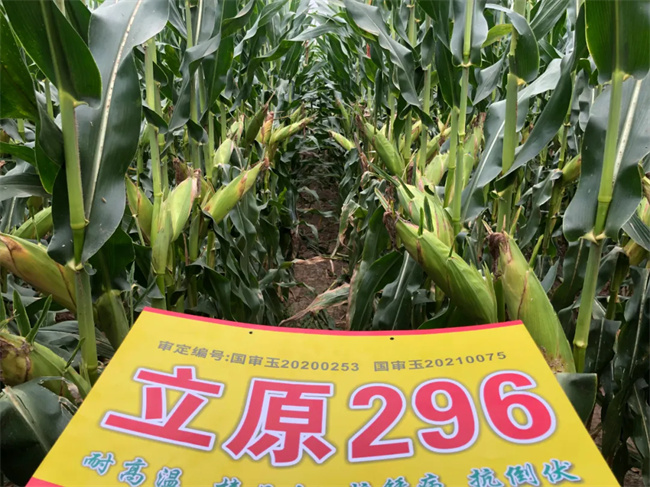 早熟、廣適、抗倒強、產量高,中抗大斑病,中抗絲黑穗病,中抗灰斑病,中抗莖腐病,中抗穗腐病,抗小斑病,中抗紋枯病,抗南方銹病;抗逆能力強,在近年的高溫熱害、陰雨寡照災害性頻發病蟲害嚴重的情況下,立原296表現出很好結實性,抗病性,抗倒性,受到經銷商認可,農民朋友的喜愛。隨著立原296銷量劇增,公司也與各位經銷商充分合作發揮品種抗性強、適應性廣