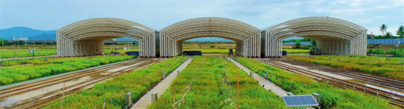 聚焦保障糧食安全,集聚力量協同攻關。位于三亞的國家耐鹽堿水稻技術創新中心崖州灣總部科研試驗基地,科研人員在不同鹽度下種植各種耐鹽堿水稻品種、材料。這里建成了國際領先的室外大田環境下的耐鹽堿水稻鑒定設施,具有多鹽度、規模化、智能化等特點,年精準鑒定能力達10萬份以上、年品種測試規模達1萬份以上。