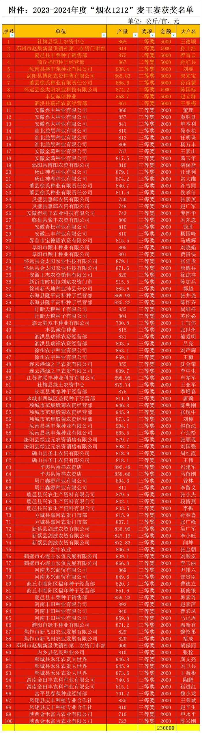 附件(jian):2023-2024年度“煙(yan)農1212”麥王(wang)賽獲獎名單(dan):