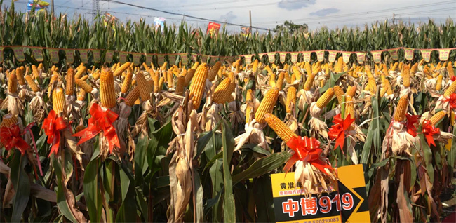 中博919:黃淮海夏玉米成熟期102.0天,比對照鄭單958早熟1.0天;株型緊湊,株高穗位比例協調,莖稈彈性好,根系發達,抗倒能力強;雄穗分枝中等且枝長,花粉量大,活力強,結實性好;接種鑒定,高抗莖腐病;產量表現:2018-2019年參加黃淮海夏玉米組區域試驗,兩年平均畝產684.6千克,比對照增產7.4%。2020年生產試驗,平均畝產689.6千克,比對照鄭單958增產7.2%;品質優,籽粒容重796克/升,粗蛋白含量10.29%,粗脂肪含量4.51%,粗淀粉含量72.87%,賴氨酸含量0.29%。