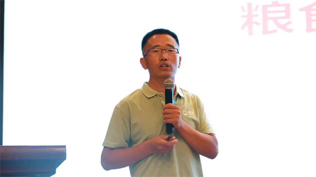 會上,技豐種業集團河北大區經理劉煥龍就玉惠豐188的優異表現做了分享。并就玉惠豐188的抗倒、抗逆、抗病、產量和品質等五大優勢和賣點做詳細介紹。