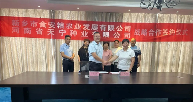 8月3日,新鄉市食安糧農業發展有限公司(以下簡稱“食安糧公司”)與河南省天寧種業有限公司(以下簡稱“天寧種業”)就酒糧小麥—天寧58在中原農谷簽署了“種糧一體化”戰略合作協議。食安糧公司總經理張麗輝、執行董事馮富強、旗下河南谷灃種業有限公司執行董事肖波,河南省天寧種業有限公司總經理馬美菊、銷售總經理郝敏等出席簽約儀式。