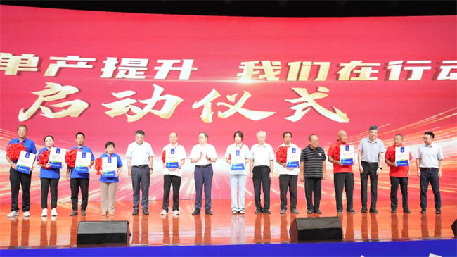 農大778以其穩產高產的特色優勢,自上市4年來,累計推廣面積達1000多萬畝,輝煌戰績的取得離不開合作伙伴和廣大種植戶的喜愛。會議現場,公司為在良種+良法配套助力糧食單產提升做出突出貢獻的高產農戶舉行頒獎儀式,并隨后還舉行了“玉米單產提升 我們在行動”啟動儀式。
