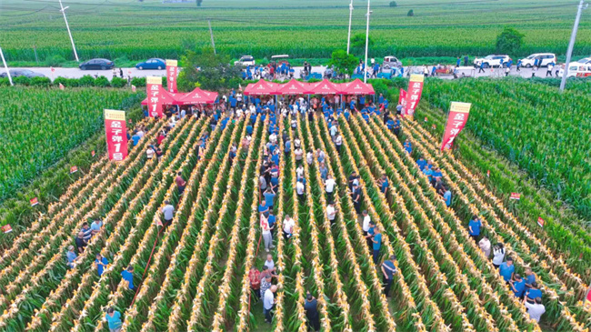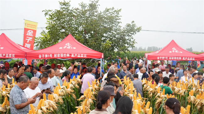 8月7日—8日,金子彈1號千人萬袋觀摩大會在濮陽縣成功召開。來自全國各地代理商、零售商和種地大戶2000余人觀摩品鑒金子彈1號的優異表現,并在大家的共同見證下,現場測產,折合畝產2071斤,其高產穩產的優勢,得到參會人員的一致好評。