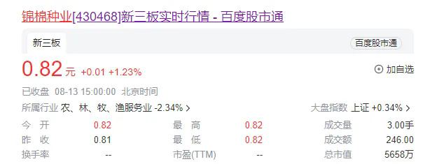 錦棉種業:連續低于1元/股,或由創新層降至基礎層