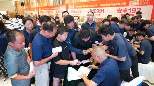 最后,金娃娃種業總經理李玉增就秋樂991上市營銷規劃做詳細分享,就具體營銷工作的落實做周密部署,并做秋樂991政策發布。不到十五分鐘,2024—2025年度秋樂991種子已被搶訂一空。場面異常火爆,會議氛圍推向高潮。
