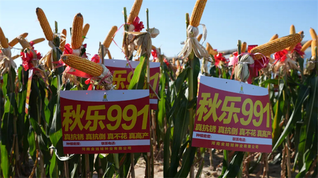 會議期間,參會代表觀摩了秋樂368和秋樂991春播展示田,交流分享了種植推廣心得。值得一提的是,秋樂368作為秋樂種業拳頭品種,自審定推廣以來,連續多年表現出豐年更高產,災年更穩產的搶眼表現,深受農戶所喜愛,并且已連續三年被選定為農業農村部主導玉米品種。根據全國農技中心的數據顯示,秋樂368已成為全國推廣面積第9大品種。秋樂991是秋樂種業繼秋樂368之后重磅推出的又一“杰作”,其大田綜合表現獲得現場觀摩嘉賓的一致好評和高度認可。