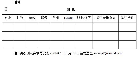 請各省(市、區、縣)種業管理部門(種子管理站)將通知轉發給轄區內相關單位和部門以及國家種業陣型企業。請參訓人員于10月10日前將回執(見附件)以電子郵件發送至sndong@njau.edu.cn,或申請加入QQ群(91233225)報名。會務組將按照收到回執時間先后給予安排,滿員為止。