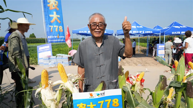 筆者與參加觀摩的幾位種地大戶交流時得知,他們來自同一個鄉鎮,最少的承包260畝地,最多的一位承包了720畝地。他們表示,今年自己大部分種的農大778,從這幾年表現看,農大778非常穩當,今天主要組團來預訂升級版農大778,明天全部種上升級版。