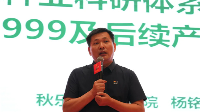 秋樂種業副總經理、秋樂科學研究院院長楊銘波就秋樂種業科研體系建設做分享。他首先從公司的人才隊伍建設、科研基地建設、研發設施和種質資源儲備、生物品種儲備等方面展示了公司雄厚實力和廣闊市場發展前景,介紹了公司最新科研進展和成果。他表示,下一步,公司將充分利用自身的豐富種質資源優勢,加強自主研發同時,聯合國內育種優勢科研院所,圍繞市場需求新變化,培育不同種植密度品種,豐富產品線,提高秋樂品牌影響力,助力經銷商進一步提高市場競爭力。