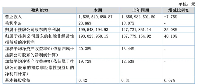 2024年1月1日-2024年6月30日,公司實現營業收入15.29億元,同比下降7.75%,凈利潤2.00億元,同比增長35.08%,基本每股收益為0.4200元。
