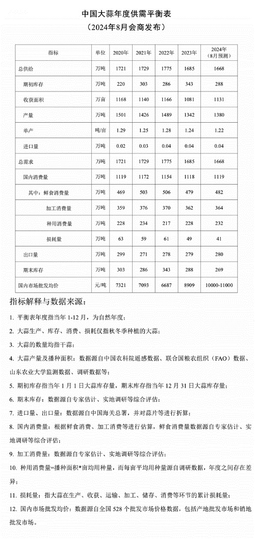 黨的二十屆三中全會指出,“聚焦構建高水平社會主義市場經濟體制”,“既‘放得活’又‘管得住’,更好維護市場秩序、彌補市場失靈。”大蒜是主產區農民增收的重要作物,是出口總額最高的農作物單品,也是百姓日常生活中重要的調味品。近日,農業農村部市場與信息化司聯合國家發展改革委、中國氣象局等部門和大蒜產業鏈主體,就我國大蒜生產、加工、消費、進出口等市場形勢進行會商,形成了大蒜供需平衡表及系列專題報告,現摘編發布,供業界參考。