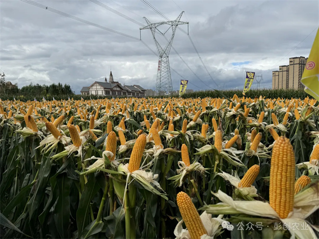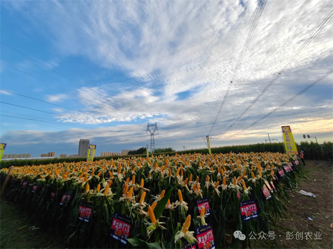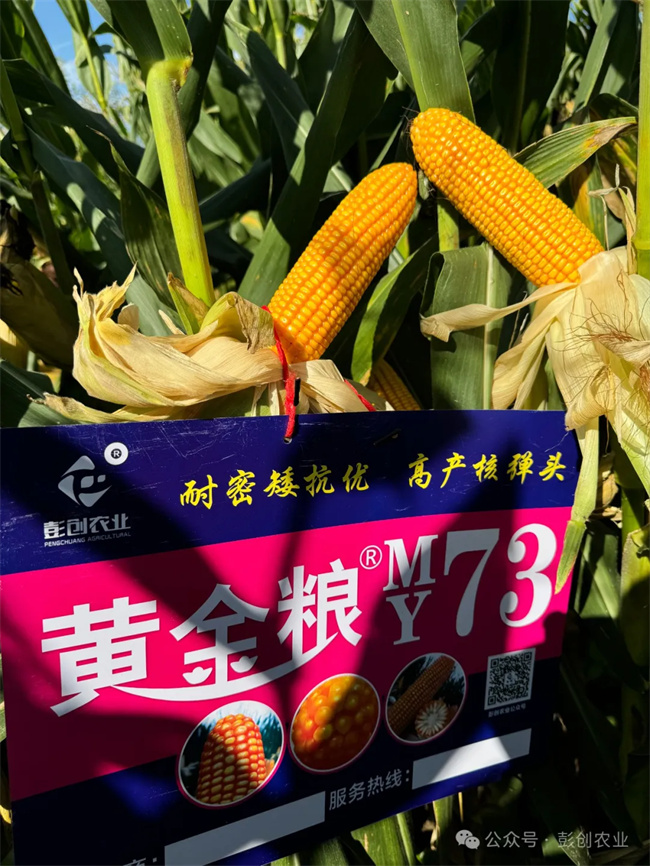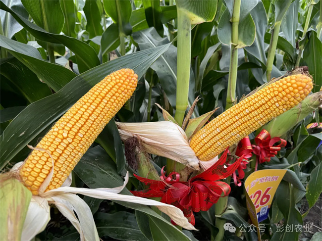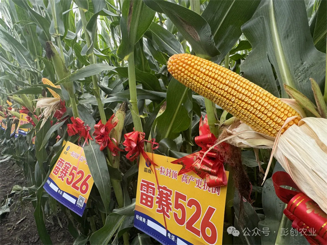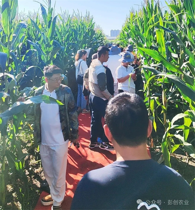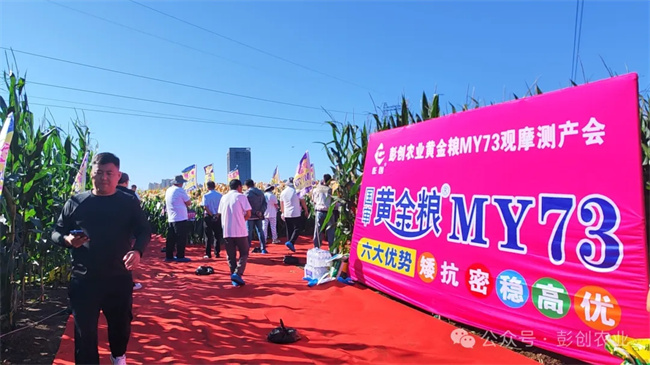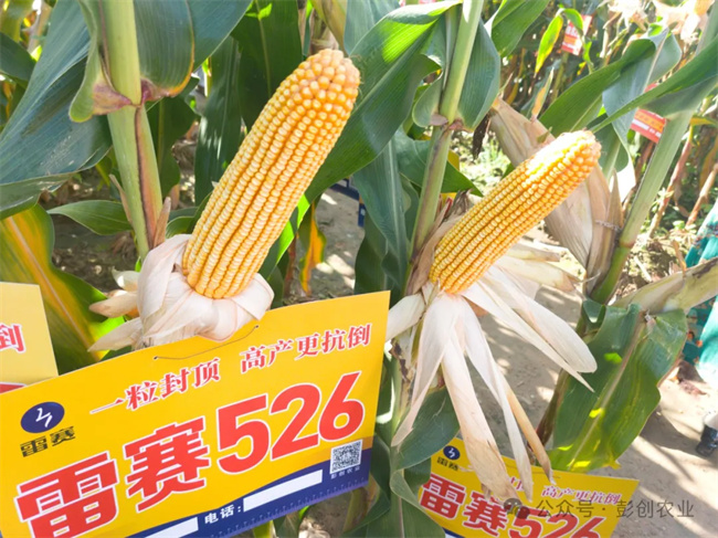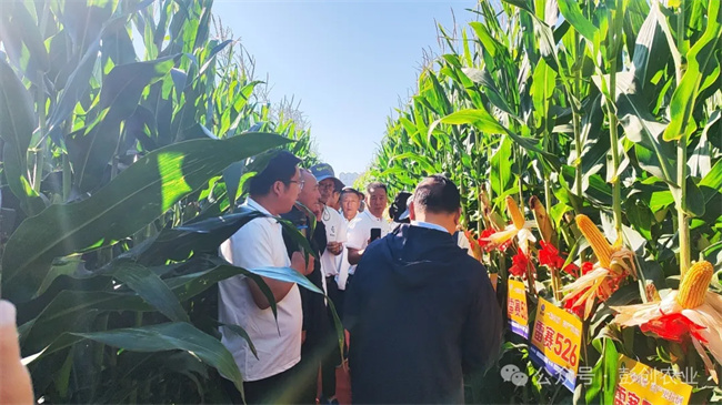 在室外現場,雷賽526、黃金糧MY73兩個明星品種齊亮相,通過人工撥開玉米穗二畝地,雷賽526和黃金糧MY73的封頂性極好,并且株高一致,穗位整齊,果穗里外均勻一致,抗病性和抗倒強,又一次刷新了合作伙伴的認識。雷賽526在東北表現非常突出,在2023年第一年單品銷售150萬畝+,黃金糧MY73去年在黃淮海銷售將近3000萬畝,許多客戶也都非常關注,今年即將通過東華北中晚熟國審,兩大超級單品一稀一密,一定會征服東北市場!