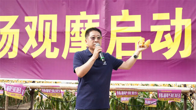 觀摩現場,秋碩種業總經理陳繼世在講話時指出,偉科908今年特別設置三個不同播期,旨在充分展示品種適應能力,讓各位合作伙伴推的放心,讓廣大種植者種的安心。他表示,今年是秋碩種業創新發展的關鍵之年,站在新的起點,希望現場的各位合作伙伴與秋碩種業一道,擰成一股繩,真正把偉科908打造成黃淮海區域的玉米大單品!
