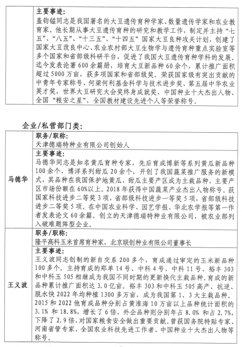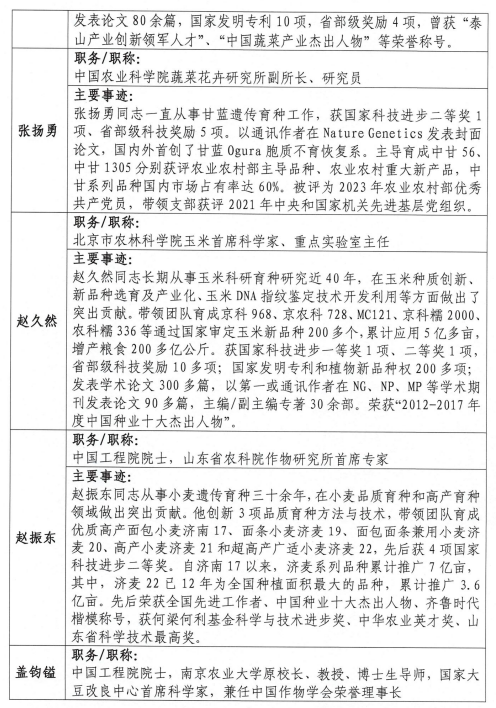 附件:2024亞太種子協會“中國種業卓越貢獻獎”候選人推薦名單及主要事跡(以候選人姓氏筆畫為序)