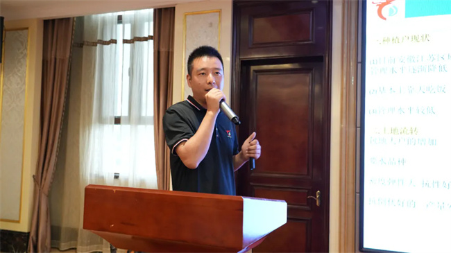 好品種,好策略,還得去落實。北京龍耘種業蘇皖運營中心總經理蘇佳分析目前黃淮海品種現狀及發展趨勢,就如何充分挖掘京科836品種優勢,落實營銷規劃的具體措施做詳細介紹,為各位合作伙伴工作實施指明方向。