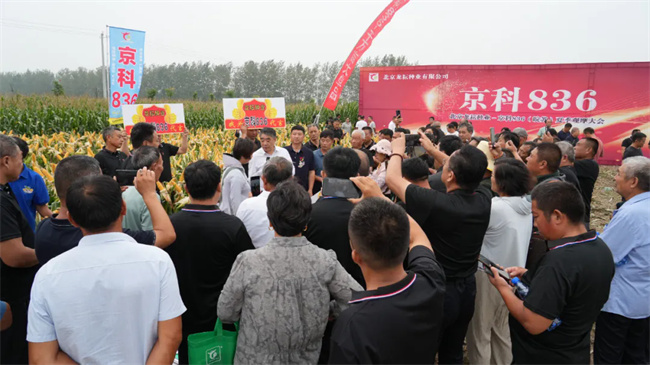 觀摩現場,參會嘉賓認真查看京科836大田長勢和結實情況,見證大品牌、大品種在災年展示的真正實力,相互交流了品種布局的營銷政策、技巧,分享了京科836耐高溫、陰雨寡照結實好,抗銹抗青枯又抗倒的高產穩產優勢,表達了繼續加強與龍耘種業的緊密合作,共創輝煌信心和決心!