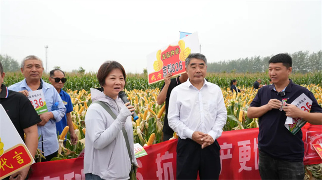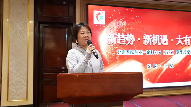 安徽農村廣播電視臺知名主持人張玲在會上做精彩分享。她說,玉米作為我國重要農作物,提醒在座的各位經銷商,應根據土壤、氣候等條件,還有玉米的一些特性,選擇一些適合本地種植的高產穩產、抗倒伏、抗病蟲的品種進行推廣,切勿盲目求高產,忽視品種抗性,造成損失。她表示,京科836在安徽多年試驗示范和生產表明,該品種綜合抗性強、抗倒好,公司實力強,希望良種+良法配套,助力糧食單產提升做更大貢獻。
