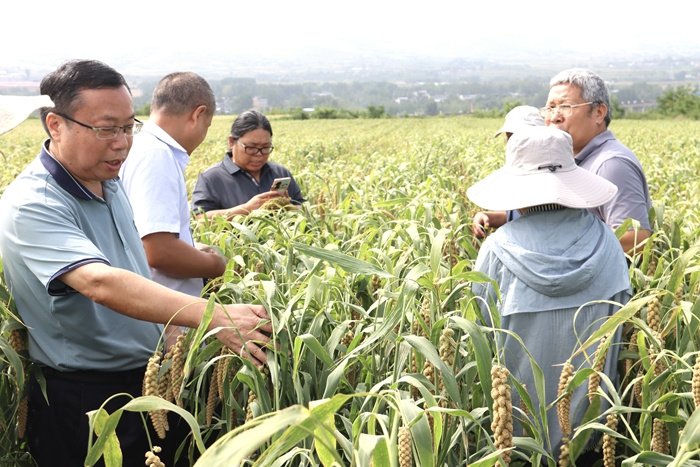 專家團隊調研中谷25田間生長情況。中國農科院供圖