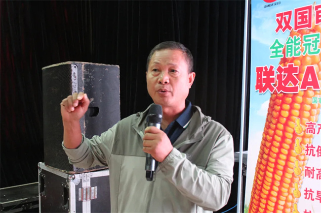 在室內分享環節,來自駐馬店遂平縣的李賀平說,聯達A74已示范種植多年,先后經歷了高溫、干旱、大風、銹病、澇災等極端天氣考驗,聯達A74穩產高產優勢得到充分展現,是一個抗逆性非常強的好品種。來自周口鹿邑縣的高祥老師是農業科研系統的試驗測試人員,他親自見證了聯達A74參加區試和生產試驗的全過程,高翔老師在發言中表示,聯達A74這個品種抗青枯病、抗穗腐、抗大小斑病等抗性一流,抗倒一流,籽粒商品性好,尤其在生產試驗環節,表現突出,平均產量更是比對照增產明顯。來自周口商水縣種地大戶王老師,就聯達A74品種的示范表現,分享了心得。來自葉縣任店鎮的基層經銷商王艷華說,去年布點示范了100畝的聯達A74,示范種植的農戶都非常滿意,都已經提前預定了2025年的聯達A74玉米種子,我對推廣聯達A74推廣非常有信心。