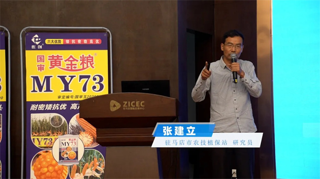 良種配良法,不僅是提高糧食產量的重要路徑,也是充分發揮科技創新成果價值所在。會上,駐馬店市植保站張建立研究員結合黃金糧MY73品種特性,從植保技術的專業角度進行賦能分享,以期進一步提高黃金糧MY73的產量和品質。