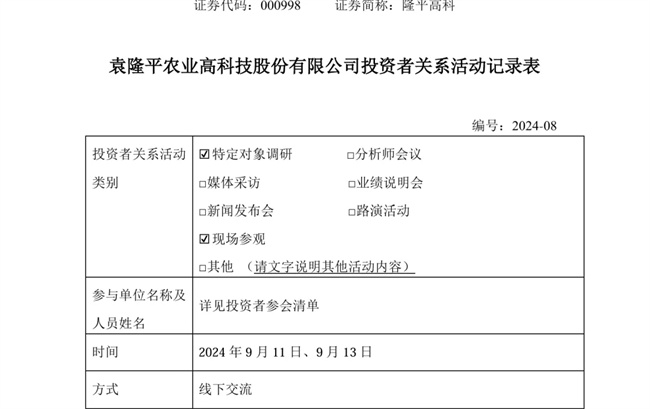 日前,袁隆平農業高科技股份有限公司(簡稱“隆平高科”)發布最新的投資者關系活動記錄表,在面對多家機構調研時,對多個市場關心的問題做出了回應,釋放了多個重要信息。