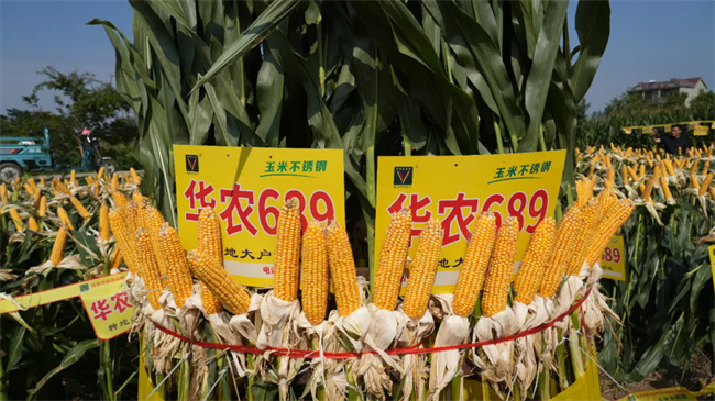 據了解,華農689于2022年通過京津冀和黃淮海雙生態區審定。黃淮海區域2019年區域試驗初試平均畝產741千克,比對照增產9.5%;2020年區域試驗復試平均畝產732千克,比對照增產10.9%;兩年區域試驗平均畝產736千克,比對照增產10.2%;2020年生產試驗平均畝產699千克,比對照增產10.0%,抗性好,中抗小斑病,抗南方銹病;棒穗均勻品質優,籽粒容重785克/升, 粗淀粉含量73.34%, 粗蛋白含量10.30%, 粗脂肪含量4.23%,賴氨酸含量0.27%。