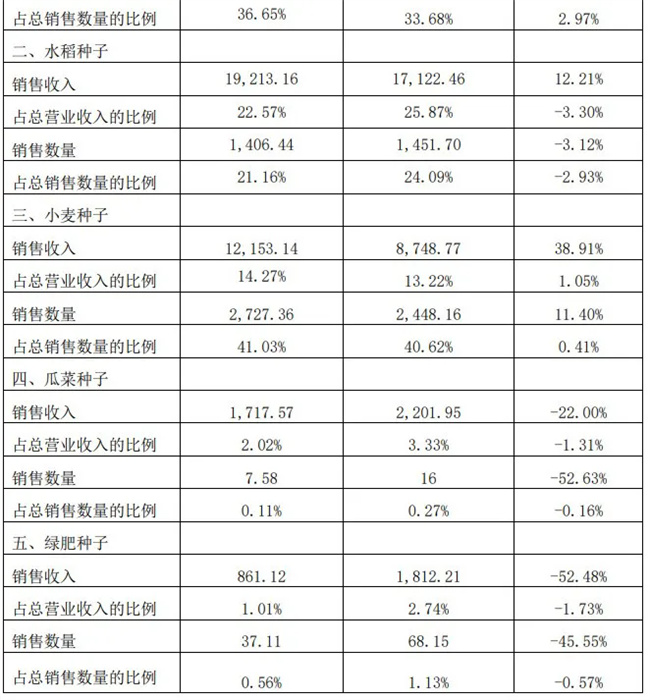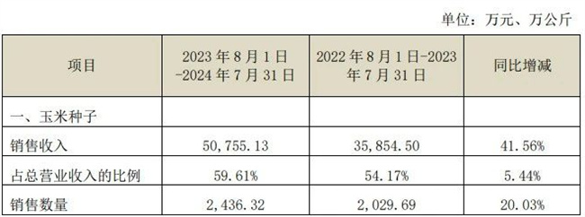 公告顯示,本經營年度收入較上一個經營年度增加18,955.61萬元,公司玉米種子、水稻種子、小麥種子銷售收入增加。