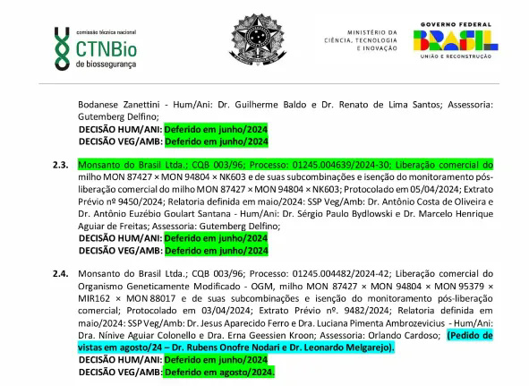 近日,巴西國家生物安全技術委員會發布消息,批準拜耳巴西有限公司申請的轉基因玉米MON87427×MON94804×MON95379×MIR162×MON88017商業化種植。