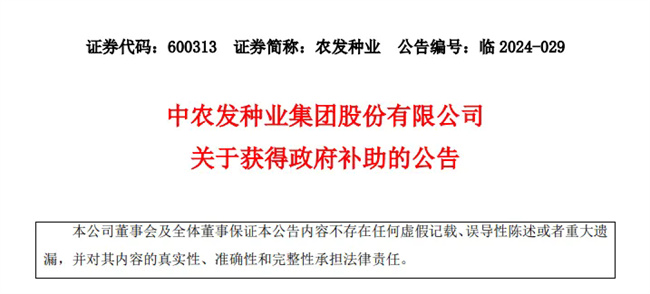 9月11日,中農發種業集團股份有限公司(下稱“農發種業”)發布關于獲得政府補助的公告。