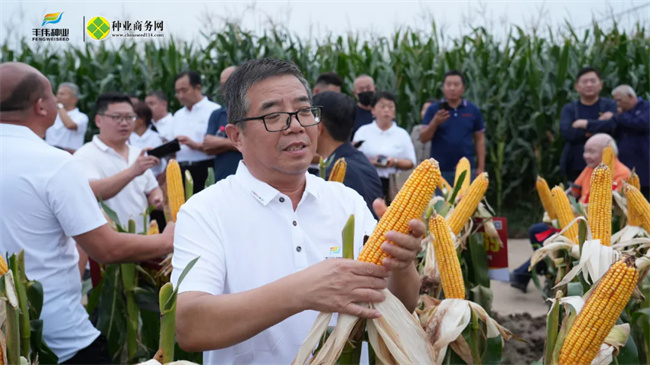 鄭州偉科作物育種首席育種家田貴軍就豐偉大白系育種策略和品種優勢進行分享和交流。田貴軍介紹,豐偉大白既保留了豫玉22、鄭單958和偉科系的高產、穩定、廣適、大棒、結實性好的基因聚優改良,又加強了品種抗銹病、抗青枯等優良抗病基因,特別是堅稈基因的導入,使其具有很強的抗倒性,后期站稈能力強,適合機收的大穗型品種。通過近年來的大田生產表明,品種市場優勢突顯。最后,田貴軍站在育種角度強調,在選擇品種時,要因地制宜,因種而異,合理密植,降低風險,增產增收。