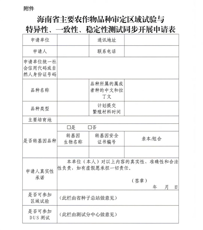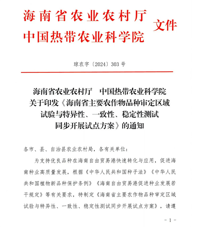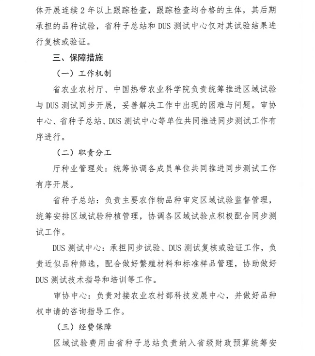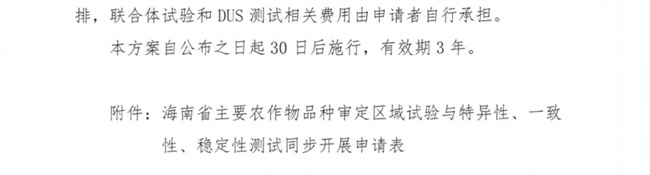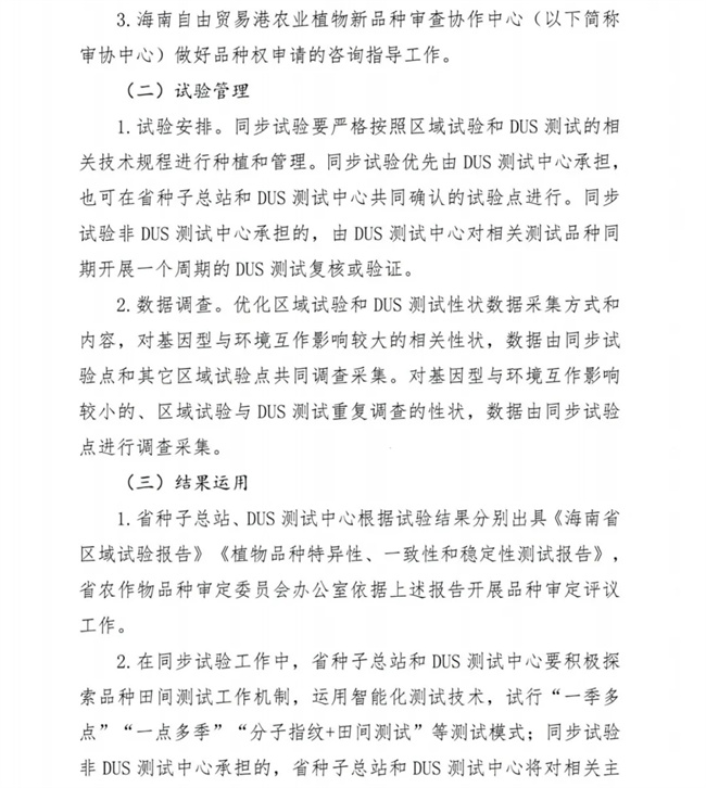 海南省主要農作物品種審定區域試驗與特異性、一致性、穩定性測試 同步開展試點方案