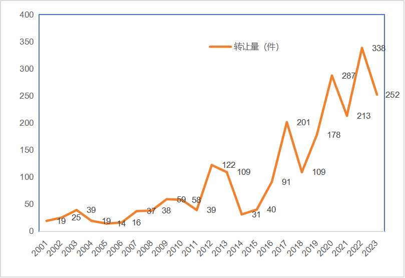 2001-2023年,申請權/品種權累計轉讓2334件。