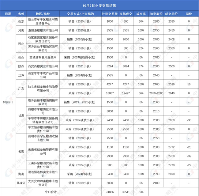 圖2:10月9日地方儲備小麥交易結果