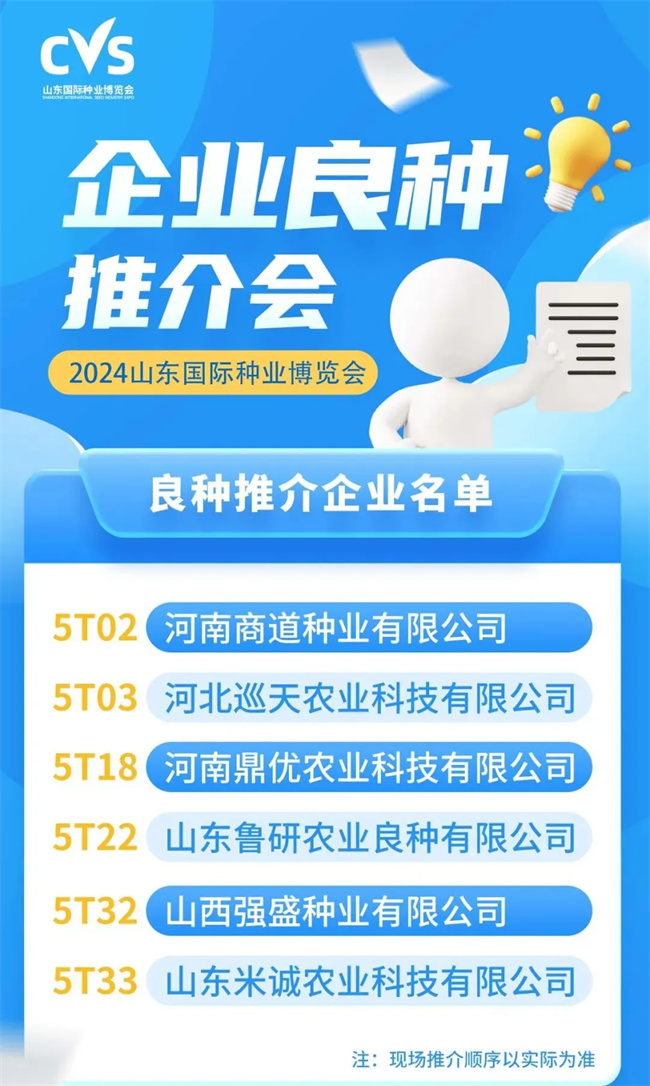 2024山東國際種業博覽會將于10月30日在山東濟南盛大召開,同期舉辦的展會還有第三十一屆山東植保信息交流暨農藥械交易會、第四屆中國·山東國際新型肥料交易會。
