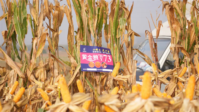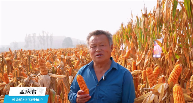 “地主”孟慶省介紹,該地塊的MY73于6月2號種植,截止目前已經134天了,依然青枝綠葉,活稈成熟。同時他表示,MY73棒子勻,結實非常好,自己已連續種植多年,這個品種耐密性好,抗倒能力強,品質好,出籽率高。在今年氣候反常的情況下,仍能獲得這么高的產量水平,自己感到非常滿意。