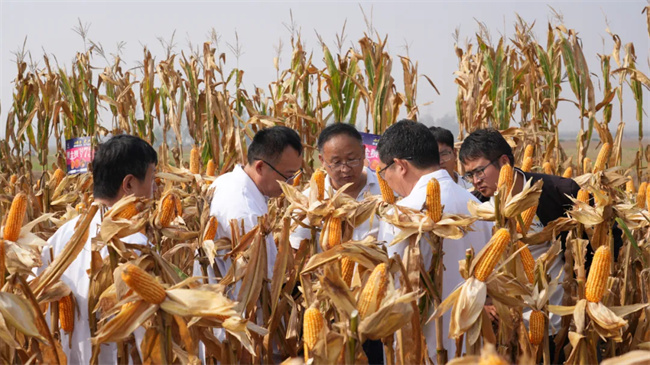 MY73觀摩田,一派豐收景象!放眼望去,黃燦燦的玉米大田,長勢喜人。一顆顆果穗金黃、粒大飽滿的玉米像待檢閱的“戰士”一般,整齊地站在地里。看色、看粒、看長勢……有人將玉米掰下來細數著籽粒,還有人將秸稈連根拔起,觀察根系的生長情況,MY73大田優異表現,獲得觀摩代表一致好評。