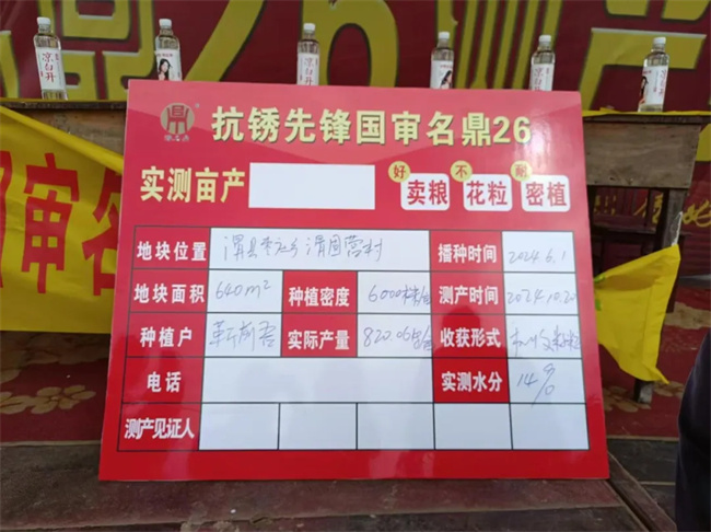 依據玉米高產、超高產田間測產驗收方法和標準,專家組先行進行考察鑒定,隨著收割機現場收割脫粒、稱重、籽粒定量去雜測定水分等一系列標準程序,測產組組長李玉玲教授宣布最終測產結果,名鼎26機械收獲籽粒實收面積一畝,折合標準籽粒含水量14%后實收畝產量為820公斤。