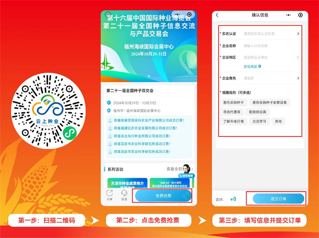 經農業農村部批準,由全國農業技術推廣服務中心、農業農村部農業貿易促進中心、福建省農業農村廳、福建省農業科學院、福州市人民政府共同主辦的第十六屆中國國際種業博覽會暨第二十一屆全國種子信息交流與產品交易會(以下簡稱“大會”)定于2024年10月29-31日在福建福州隆重舉行。