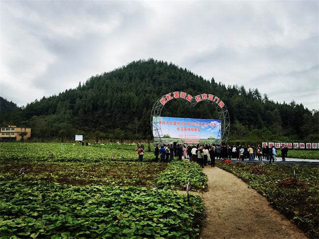 彭水縣委副書記羅道書在現場介紹,該縣緊緊圍繞“中國苕粉之都”定位,全力構建“種苗繁育、綠色種植、保鮮儲存、精深加工、品牌營銷、薯旅融合”的全產業鏈發展格局,力爭今年全產業鏈綜合產值達20億元以上。目前,彭水甘薯種植面積穩定在30萬畝,其中高產量、高淀粉甘薯訂單種植10萬畝。已開發出晶絲苕粉、火鍋寬粉、酸辣粉、紅薯干、紅薯片、紅薯酒等10多種甘薯產品,每年加工鮮薯達16.8萬噸,10萬余戶農戶通過發展甘薯實現了增收。