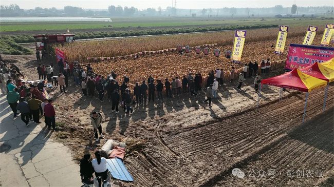 2024年10月24日,彭創農業在封丘縣進行黃金糧MY73機收測產,來自周邊縣市的800多人前來見證,場面熱鬧非凡!
