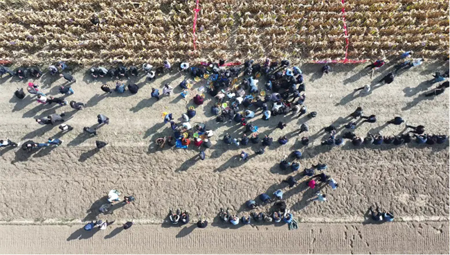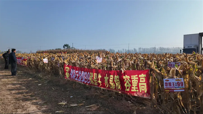 據“地主”介紹,觀摩地塊七月中旬被大雨淹過。 面對今年如此極端的天氣狀況,浚黎99仍能展現出如此卓越的表現,充分證明了品種的優異豐產性能。收獲時籽粒色澤金黃,一粒封頂,這一出色成果贏得了參會人員的一致稱贊。